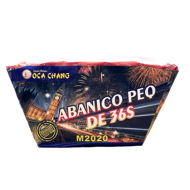 El Abanico de 36 Tiros de OCA CHANG es una de las baterías de luces más vendidas, la duración media de esta batería en forma de abanico es de ~30 segundos, lanzando 5 tiros de 5 luces cada tiempo haciendo que queda lanzamiento de las luces sea un verdadero espectáculo.