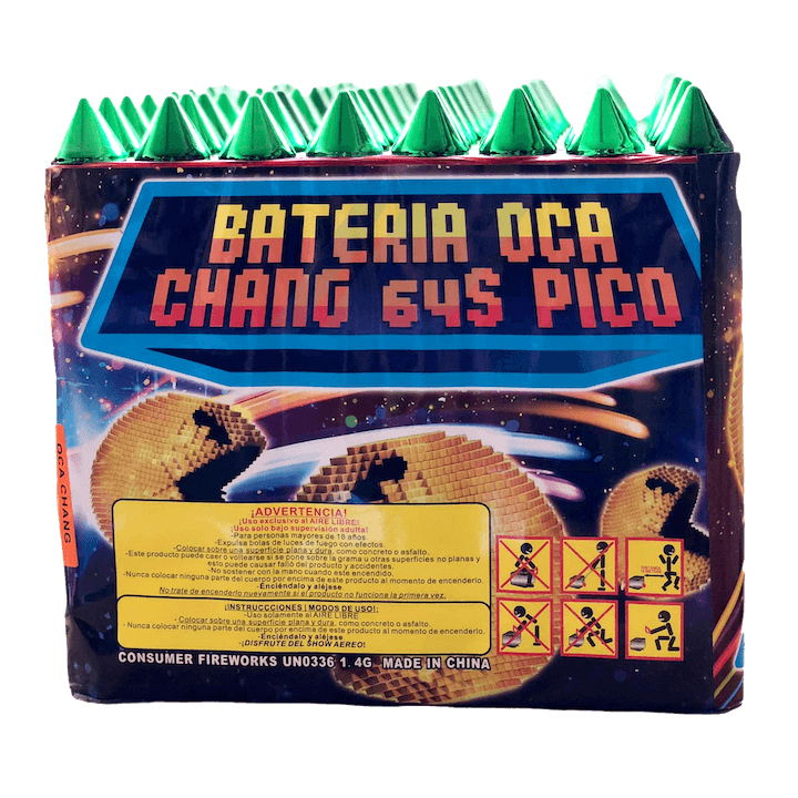 La Batería de 64 tiros OCA CHANG es una de las baterías de luces más vendidas, haciendo que queda lanzamiento de las luces sea un verdadero espectáculo.