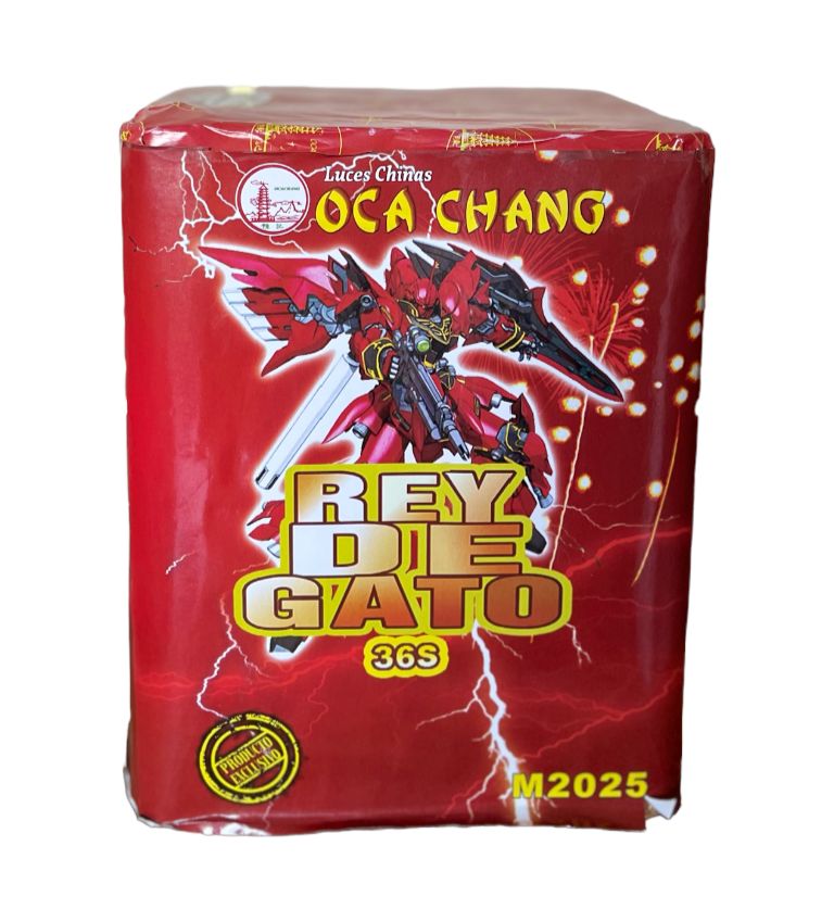 El Rey de Gato OCA CHANG de 36 tiros es una de las baterías de luces favoritas y más vendidas, haciendo que queda lanzamiento emite un sonido simulando un misil teledirigido y al final explota en luces efecto de CANTOS de CRISANTEMOS lo cual hace que sea un verdadero espectáculo.